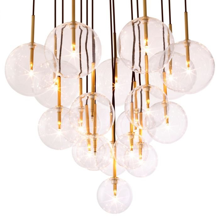 Kroonluchter Aulani maakt zeker een statement. Hoewel modern in ontwerp, zal deze 12-lichts clusterhanger persoonlijkheid en charme toevoegen aan zowel traditionele als moderne interieurs. De hanger hangt aan een ronde plafondrozet met een antiek messing afwerking. Ze is voorzien van 12 heldere glazen bollen die in hoogte verstelbaar zijn en dus in elk gewenst patroon kunnen worden opgehangen. En ideale hanglamp om boven een eettafel of salontafel te hangen.