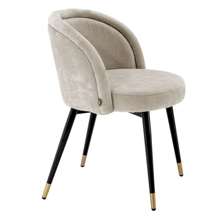 Transformeer je interieur in een oogwenk met de eetkamerstoel Chloe, die wordt geleverd als een set van twee. Perfect voor je eetkamer, slaapkamer en studeerkamer, deze stoel is even comfortabel als mooi. De taps toelopende zwarte poten zijn afgewerkt met messing doppen en de Clarck sand bekleding rondt de retro-look stijlvol af.
