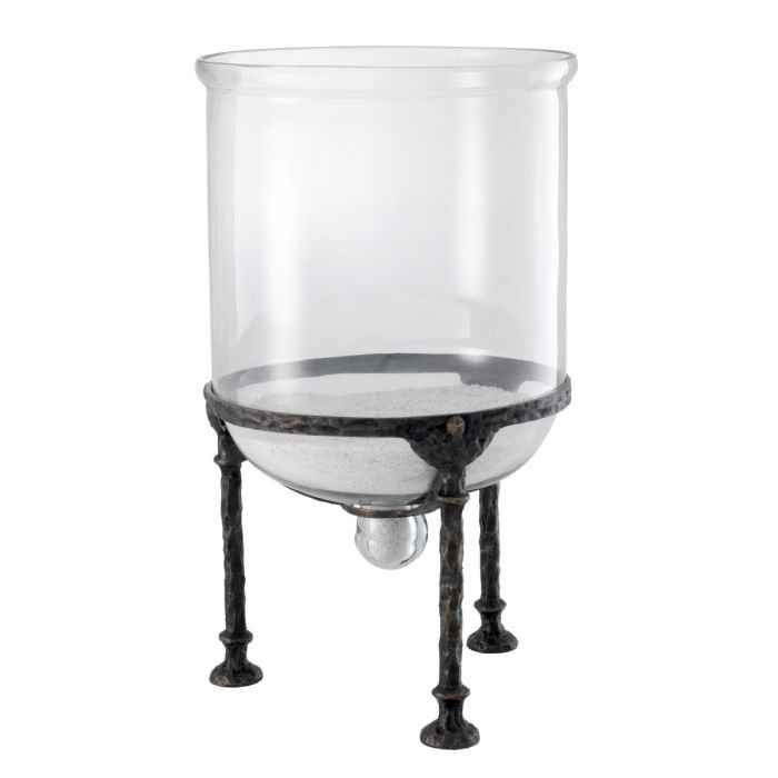 Geef je huis een warme en gezellige uitstraling met de Grace Hurricane. Prachtig gesmede poten geven een traditioneel tintje aan deze elegante kandelaar met stolp van helder glas. De afwerking met gunmetal highlight heeft gesimuleerde ouderdomssporen en slijtage, wat dit decoratieve item extra charme geeft.